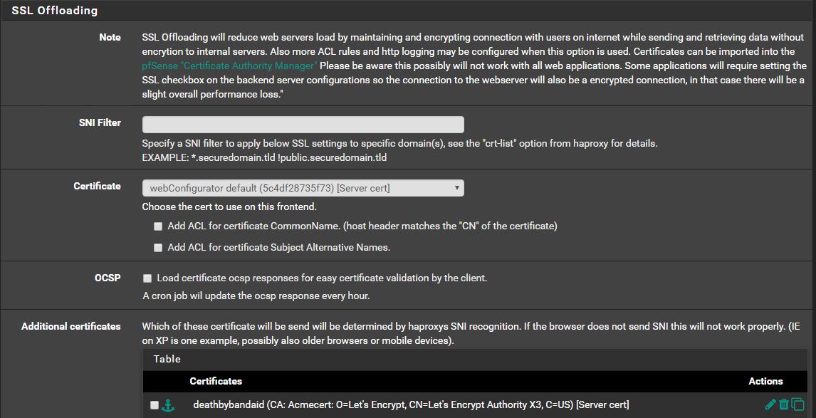 For this setup I will focus on using Acme Letsencrypt to obtain a certificate. There are other ways to add a cert to your haproxy setup.